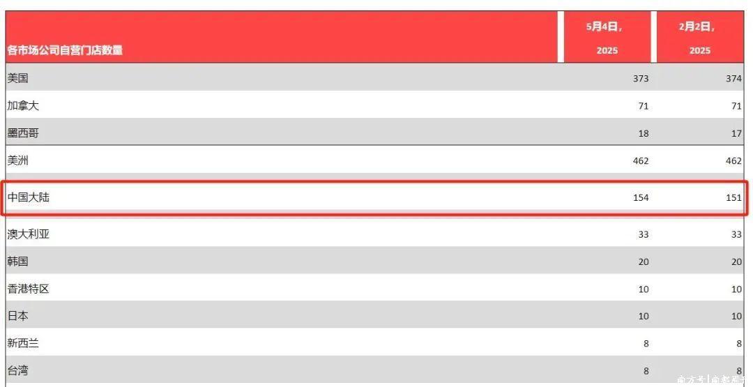 报告显示,截至季度末,中国大陆直营门店数量高达154家,占全球自营门店数量的20%。