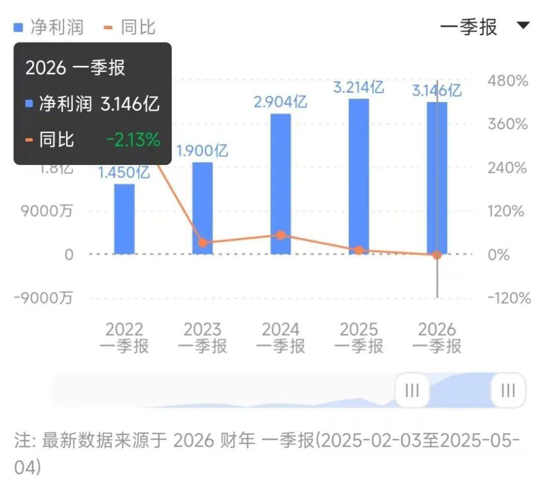 尽管2025财年第一季度Lululemon实现营收增长,但净利润却同比下滑2.13%至3.15亿美元。南都·湾财社记者注意到,这是公司自2021年以来首次出现一季度净利润下滑的情况。